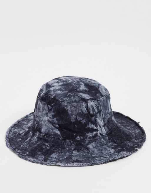 Topshop Tie Dye Denim Bucket Hat In Black Asos